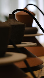 Ils sont venus au studio, où je leur ai présenté les différentes terres, ainsi qu’un premier dessin de proposition. Ensemble, nous avons affiné les formes, les matières et les détails. Un mois plus tard, leurs luminaires ORRAE sur mesure voyaient le jour.